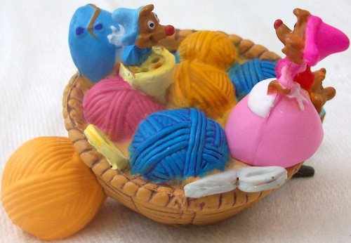 Disney Cinderella's Friends Jaq, Suzie and Perla the Mice in a Tiny Sewing Basket, Figure Toy, Cake Topper